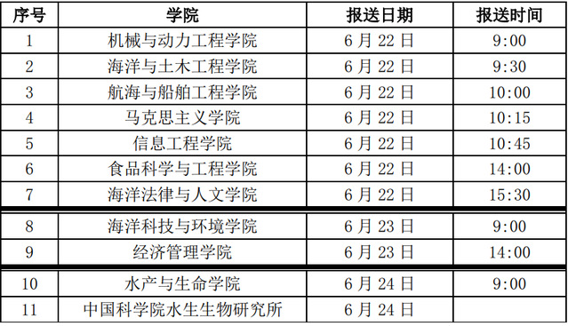 请各学院完成答辩组织工作后,填写答辩情况报告(附件5)。经学院审核盖章后,将纸质版及电子版连同以上所有答辩材料报送研究生院。具体报送时间如下: